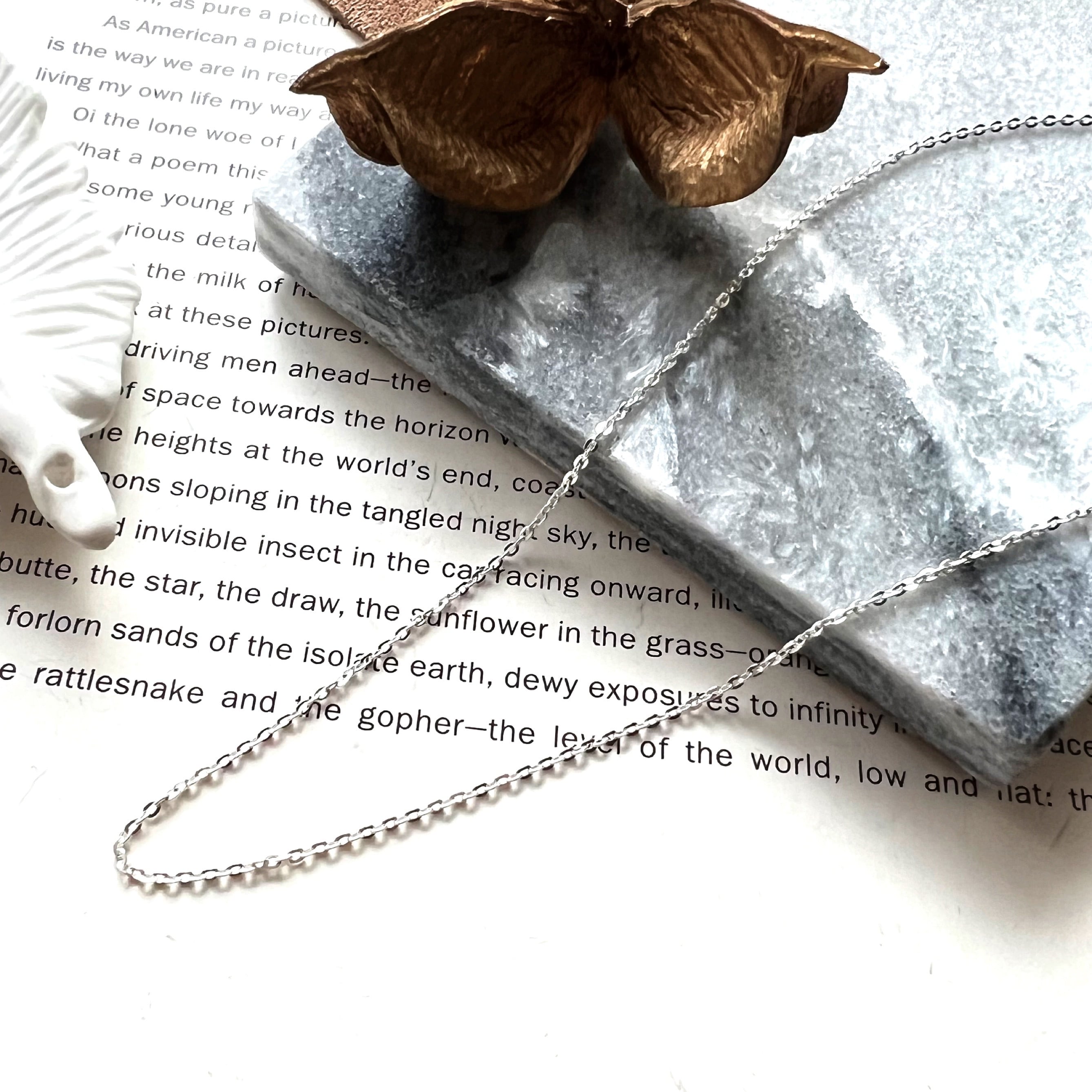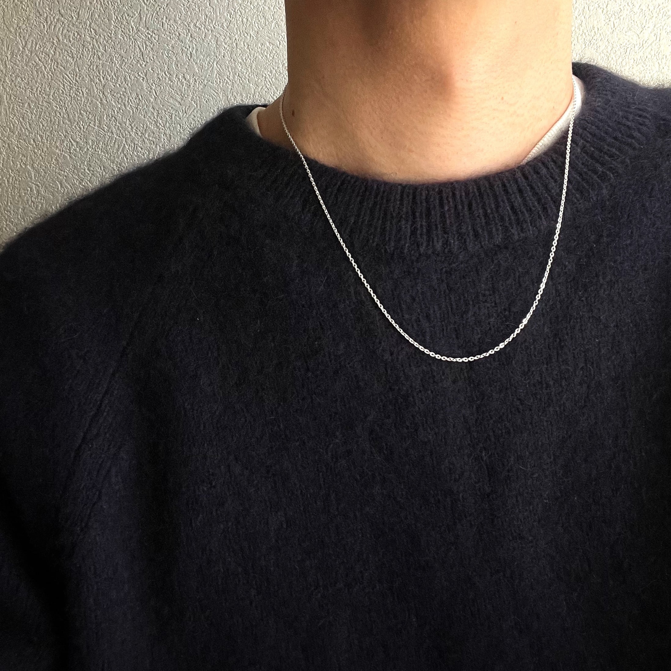 シルバーの輝きを放つ細身のナローチェーンはさまざまなスタイルに合わせやすく、