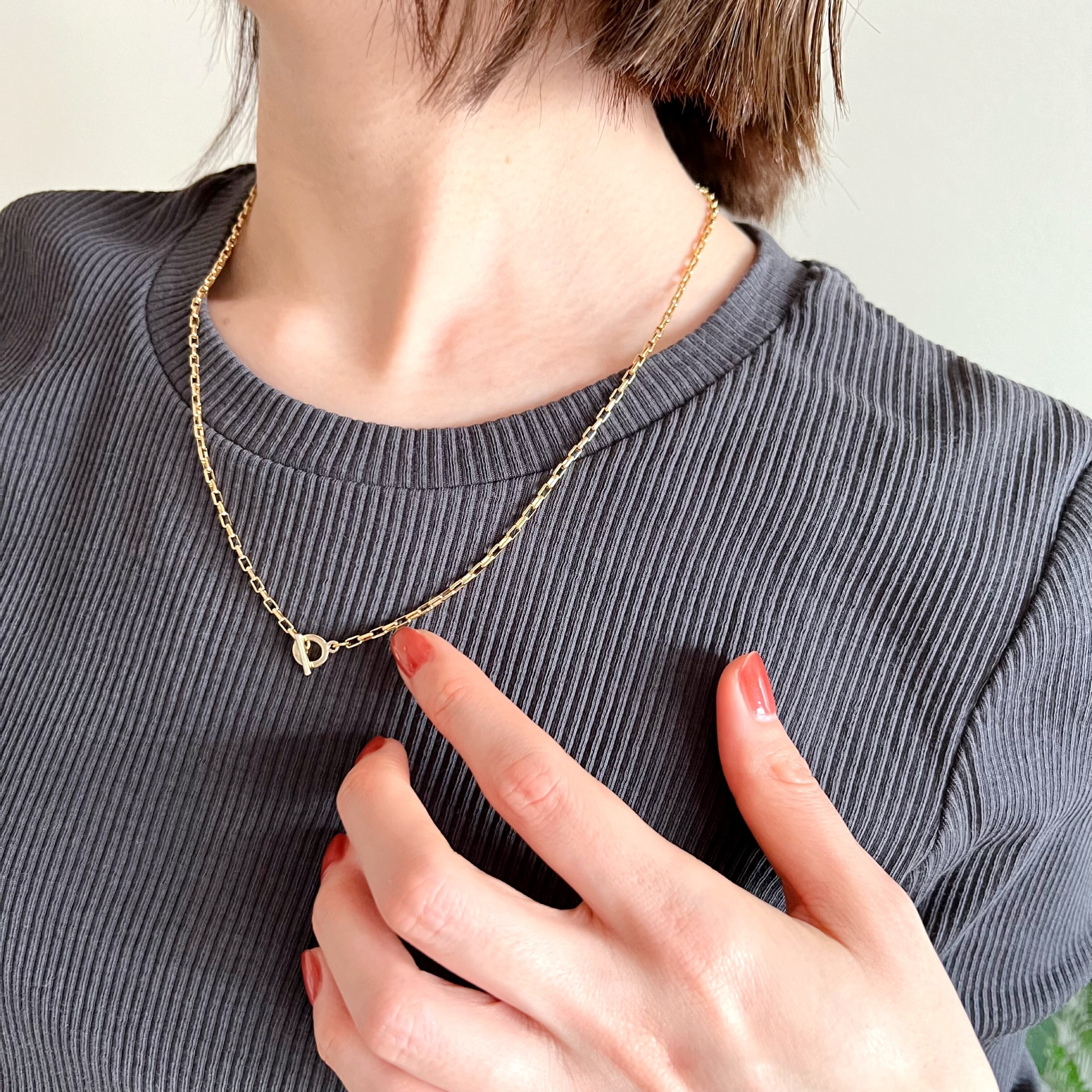 ゴールドカラーの色合いが特徴のパリスモールチェーンネックレス。